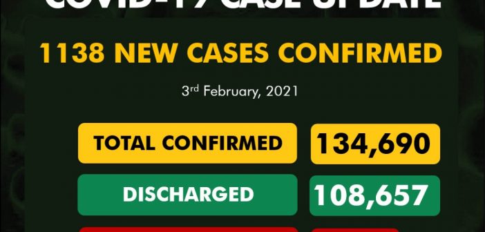 1,138 new cases of COVID19 have been recorded in Nigeria.