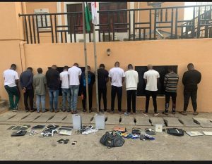 Five of the suspects were picked up at an N8m a year apartment in Gilmore Estate, Jahi, while the other eight were arrested at Katampe Extension, all in Abuja.