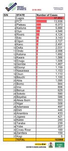 Other states with fresh cases include Oyo-120, Rivers-113, Plateau-111, Kaduna-71, Kwara-71, Akwa Ibom-34, Sokoto-31, Benue-28, Ogun-27, Kano-26, Kebbi-17, Osun-12, Nasarawa-11, Delta-10, Gombe-10, Bayelsa-9, Borno-9, Edo-8, Ekiti-3, Jigawa-2 and Katsina-2