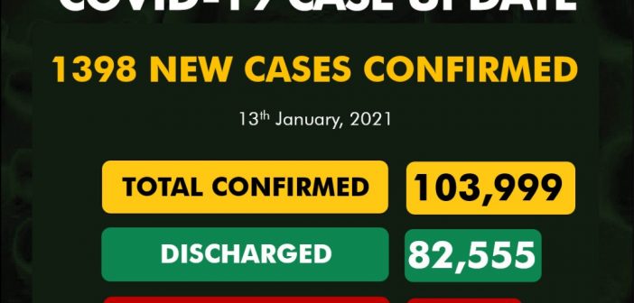 The Nigeria Center for Disease Control NCDC says 1398 new cases of COVID19 were recorded in Nigeria on Wednesday, January 13.