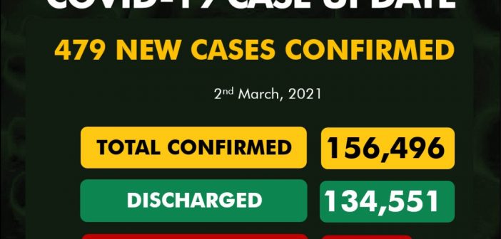 The Nigeria Center for Disease Control NCDC has said that 479 new cases of COVID19 were recorded in Nigeria on Tuesday, March 2.