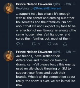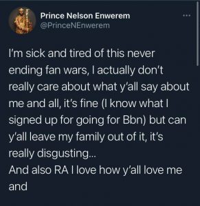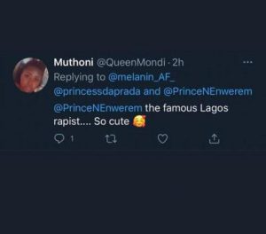 Big Brother Naija star, Prince Nelson Enwerem has reacted to being called a ‘rapist’ by a Twitter user.