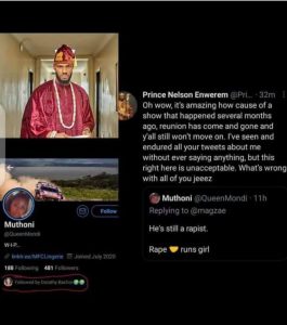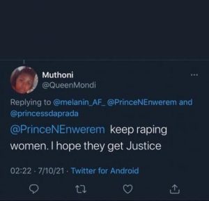 Prince who noted that he ‘endured many tweets’ without saying anything, stated that being called a rapist is wrong.