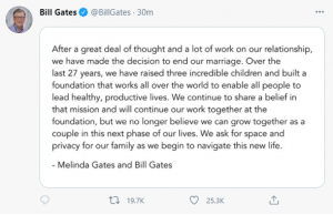 Bill and Melinda Gates have announced that they are ending their marriage after 27 years.
