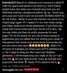 Following the apology, a follower mentioned to Nkechi Blessing that she apologized for fear of Bobrisky.