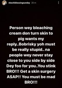 Bobrisky hit back, calling Nkechi names. And Nkechi fired back at the crossdresser immediately.