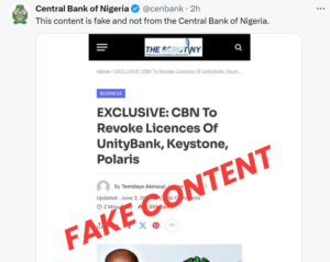 The Central Bank of Nigeria (CBN) has said that it has no plans to revoke the licences of Unity, Polaris, and Keystone banks.
