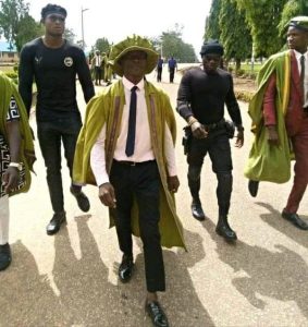 Comrade Akolo Akpavan Best, the president of the Students Union Government, SUG, College of Education Akwanga, Nasarawa state, was spotted moving around with bodyguards.