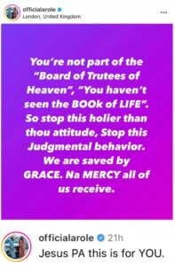 Comedian Bayegun Oluwatoyin, popularly known as Woli Arole, has used social media as a platform to discuss judgmental Christians. In a post shared on X, he emphasized the need for Christians to abandon holier-than-thou attitudes, reminding them that they are neither members of the Board of Trustees of heaven nor have they seen the book of life.