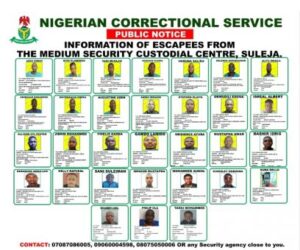 The Nigerian Correctional Service, (NCoS) has released details of biometric information of some escapees from the Medium Security Custodial Centre, Suleja, under the Federal Capital Territory (FCT) Command.