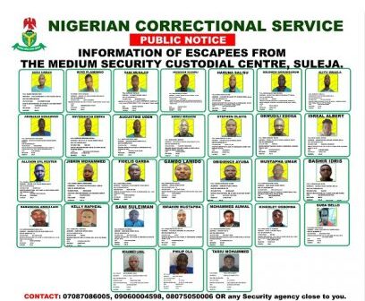 If any of the escapees is sighted, the public can report to the nearest security agent or agency or may call the following numbers: 07087086005, 09060004598, or 08075050006.