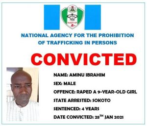 According to a statement issued on Wednesday, February 3, by Stella Nezan, Head, Press and Public Relations Unit of NAPTIP, the convict was arrested on September 2020, by the operatives of the Nigerian Security and Civil Defense in Sokoto metropolis.