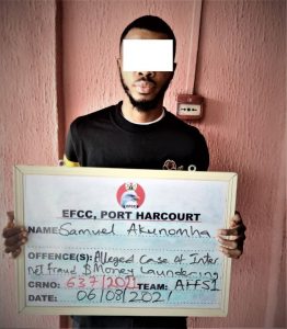 The Port Harcourt Zonal Command of the Economic and Financial Crimes Commission, EFCC, has arraigned a suspected internet fraudster, Samuel Akunomah, before Justice A.T. Mohammed of the Federal High Court sitting in Port Harcourt, Rivers State.