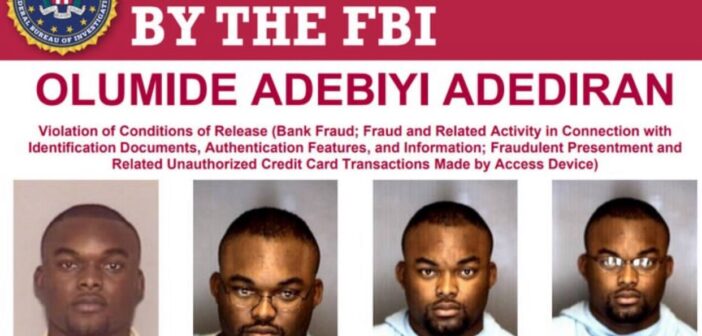 On the night of Wednesday, September 24, the FBI announced a reward of up to $10,000 for information leading to the arrest and conviction of Olumide Adebiyi Adediran, a Nigerian national wanted for Violation of Conditions of Release.