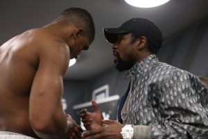 Mayweather was ringside in London for Joshua’s ninth-round stoppage of IBF mandatory challenger Kubrat Pulev back in December where he offered tactical advice during the fight. After the fight, Mayweather also visited Joshua privately at home