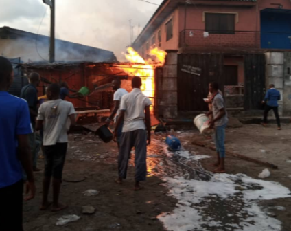 Men of the Lagos State Emergency Management Agency LASEMA are on ground to stop the fire outbreak.