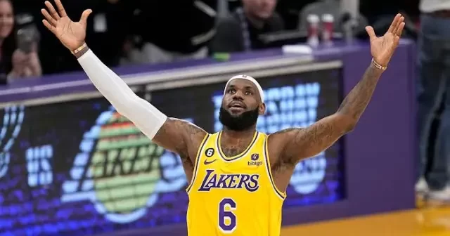 Abdul-Jabbar, sitting courtside, was among the first to congratulate James as play was interrupted to salute an iconic moment in NBA history.