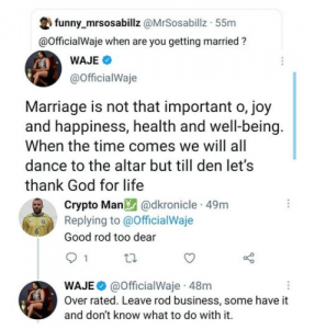 ”Marriage is not that important o, joy and happiness, health and well-being. When the time comes we will all dance to the altar but till den let’s thank God for life”