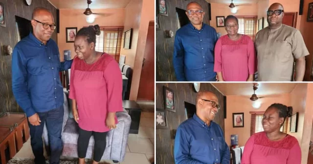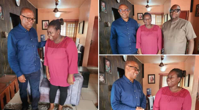 Presidential candidate of the Labour Party (LP), Peter Obi has visited Mrs. Jennifer Efidi, the woman in a viral video who was attacked by political thugs while queuing to vote at her polling unit in Surulere, Lagos.