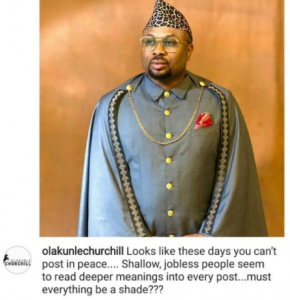 Olakunle Churchill took to his Instagram page this morning to lament on how trolls misinterprete some of his post on social media.