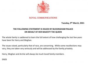 The British Royal family has reacted to the explosive interview given by Prince Harry and Meghan Markle during their interview with Oprah Winfrey.