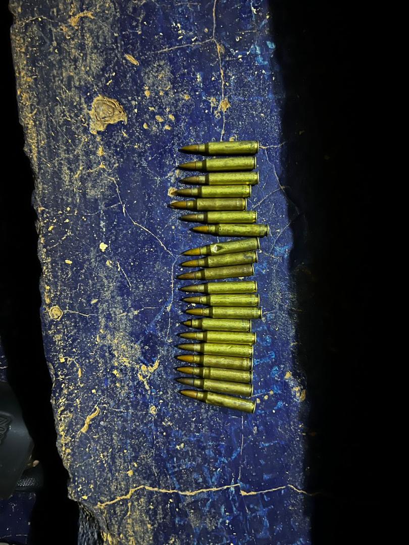 A search of the abandoned vehicle led to the recovery of one AK-47 rifle (serial number 06536), one K2 Daewoo assault rifle (serial number 063991), one AK-47 magazine, one K2 magazine, 20 rounds of 7.62mm special ammunition, and 20 rounds of 5.56mm ammunition.